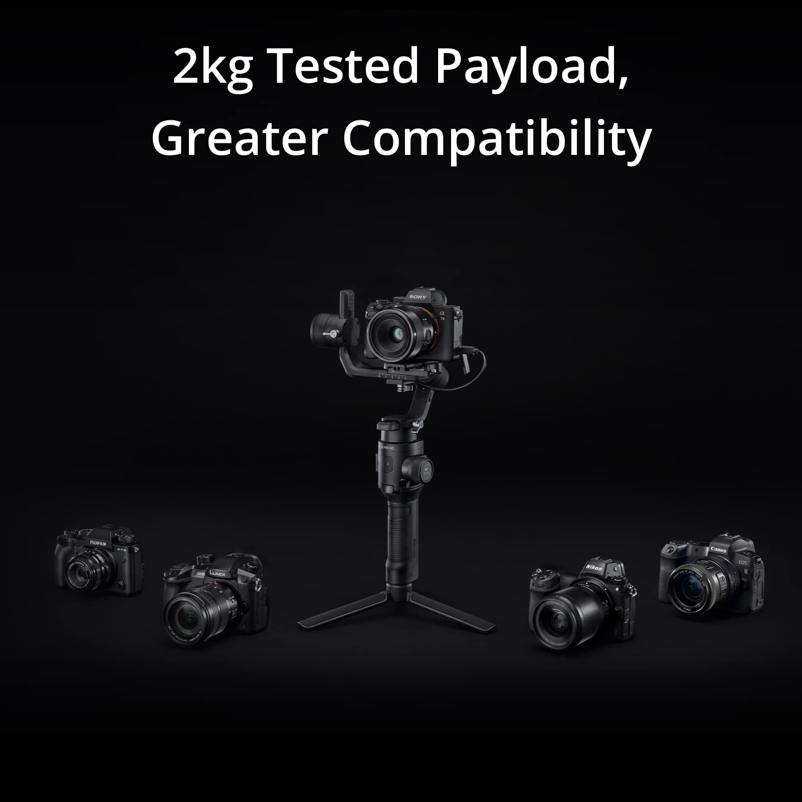 DJI Ronin-SC, 3-Axis Camera Stabilizer, up to 2kg (4.4lbs) Payload, Lightweight Design, Dynamic Stability, Automated Features, Available for Canon/Sony/Panasonic/Nikon/Fujifilm
